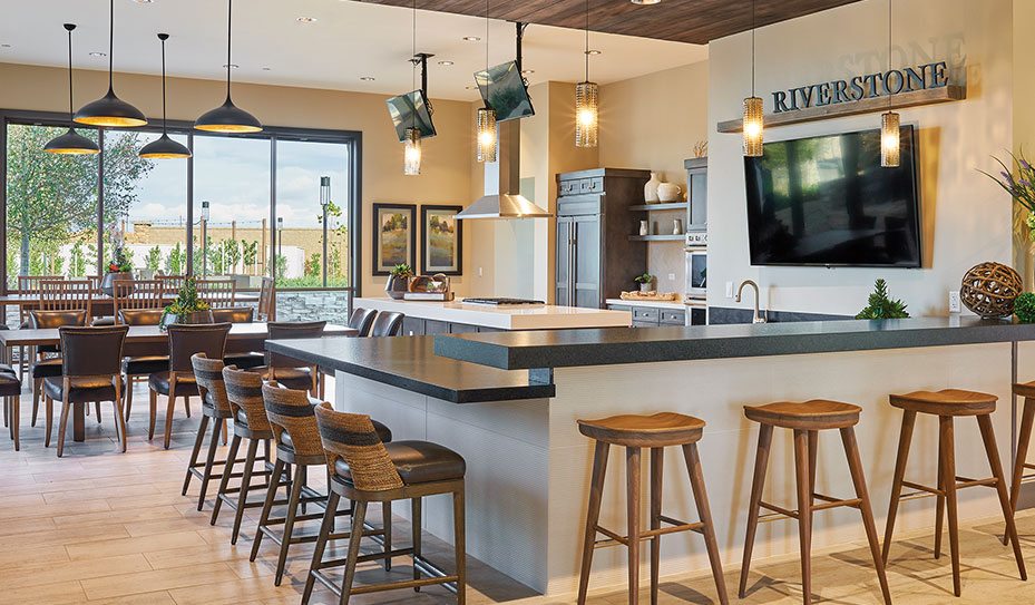 Situated in the heart of the region’s path of growth, Riverstone—when complete—will total approximately 6,578 single-family, attached and multi-family homes. Coming soon is the one-million-square-foot Riverwalk mixed-use lifestyle retail destination. Amenities at Riverstone include walkable neighborhoods, parks and open space, a private trail network for hiking and biking, a dog park, a sustainable water supply and The Lodge community clubhouse with resort-style swimming pools, a trainer-designed fitness center, demonstration kitchen, Gear Barn, outdoor gathering spaces with firepits, and ongoing monthly activities such as self-defense classes, book clubs, arts and crafts, specialty meal cooking classes and more.
