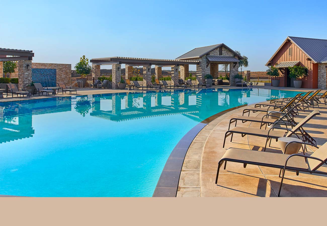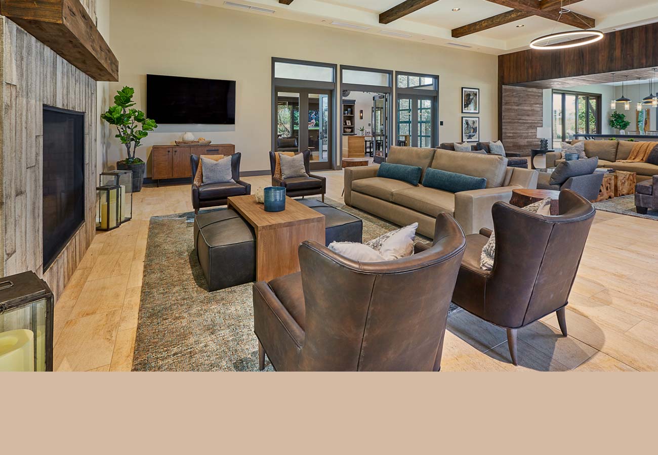The contemporary architecture of The Lodge at Riverstone is called “deconstructed agrarian industrialism.” But you’ll call it the coolest hangout—ever. Combining the rusticity of farm with the magnificence of the west’s National Park lodges, this truly one-of-a-kind venue is comfortable enough to call your second living room. Within its grand interior are a planned state-of-the-art fitness center, flexible spaces for gatherings and events, and much more. Envisioned just outside is comfortable seating around firepits and a terrace revealing a sparkling pool, spa, cabanas and a refreshments bar.
